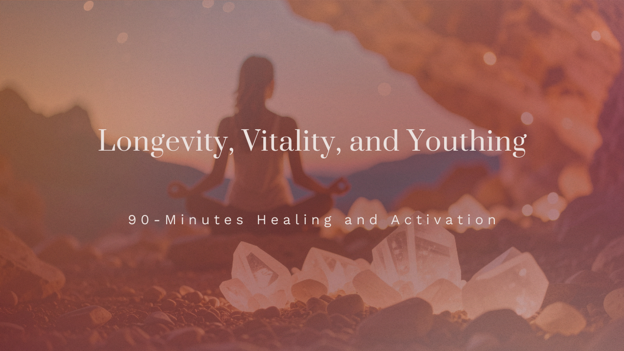 We will energetically release stress, activate cellular repair, circulate light energy throughout the body, and align you with your Divine Design of well-being, love, support, abundance, and success, all of which lead to longevity, vitality, and a younger you at any age or stage of your life.